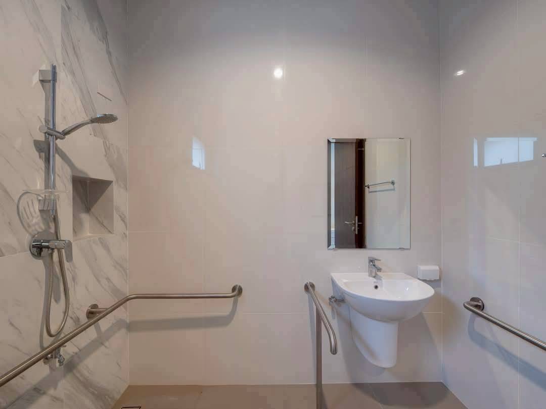 ✅ห้องนอนล่างออกแบบมาเพื่อผู้สูงอายุ พื้นออกแบบพิเศษเพื่อรองรับแรงกระแทก พร้อมราวจับในห้องน้ำเพื่อความปลอดภัย